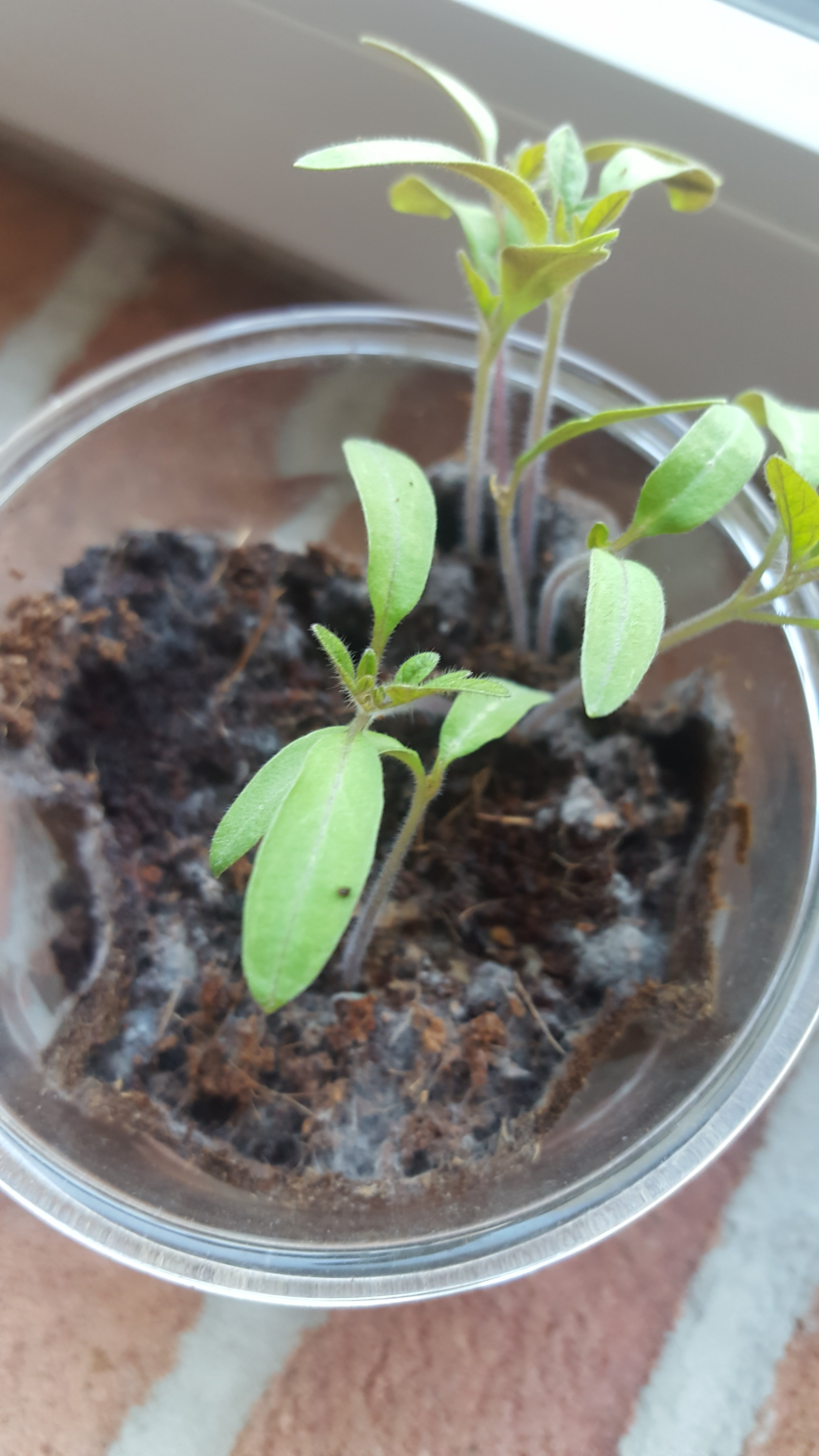 Voilà les premiers plants qui ont 15 jours. Bientôt ils auront leur pot individuel et pousseront dans ma salle à manger près de la fenêtre car elle donne au Sud. Et comme il y a fait -6°C hier et -3°C cette nuit, mes plants sont bien mieux ici que dans le potager.