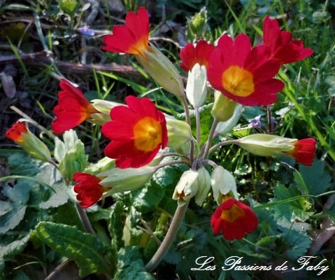 Tout à commencé le jour où je suis allée au cimetière me recueillir sur les tombes de mon père et de ma grand-mère, ce sont les deux personnes qui m’ont élevée. Le reste de cette famille n’existe plus pour moi depuis bien longtemps. Mon père est décédé lorsque j’avais 14 ans, ma grand-mère, il y a 11 ans maintenant… Bref, lorsque je suis allée au cimetière cette année là en 2008 je venais d’enterrer ma grand-mère, mamie Catherine, celle qui m’a tout appris (d’elle aussi tu as dû en entendre parler sur ce site). Et en entrant dans le cimetière, mon regard fut attiré par du rouge sur le carré de verdure ou poussaient quelques primevères style pâquerettes, violettes et autres coucous. En m’approchant, je vis qu’il s’agissait de coucous… rouges.