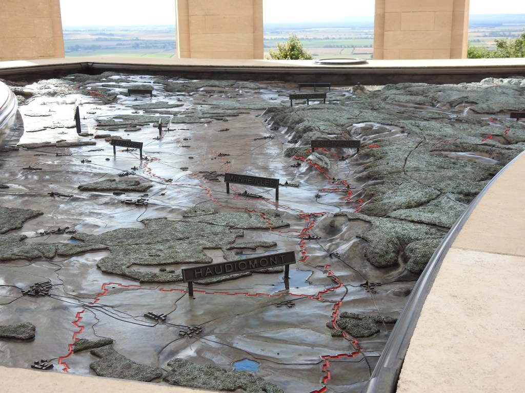 Au centre se trouve une carte en bronze détaillée du champ de bataille