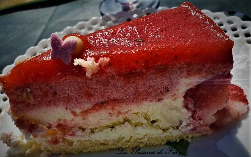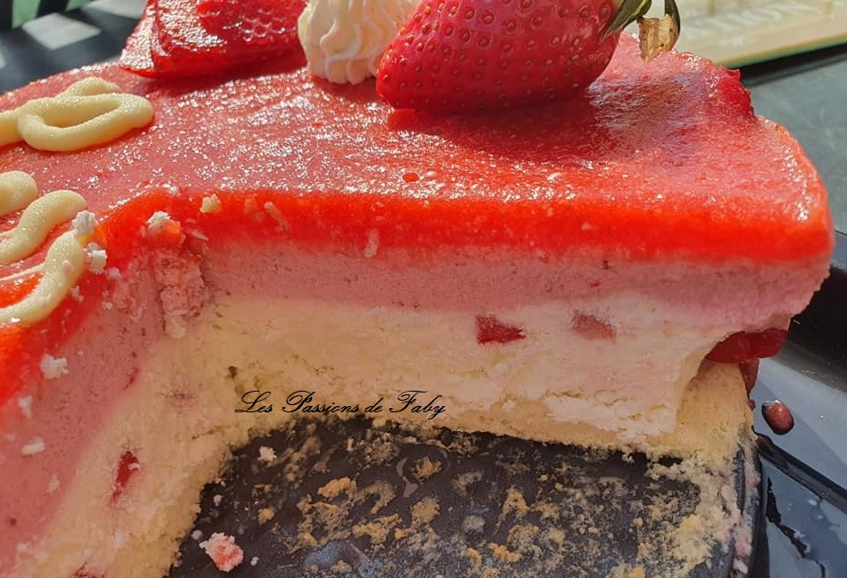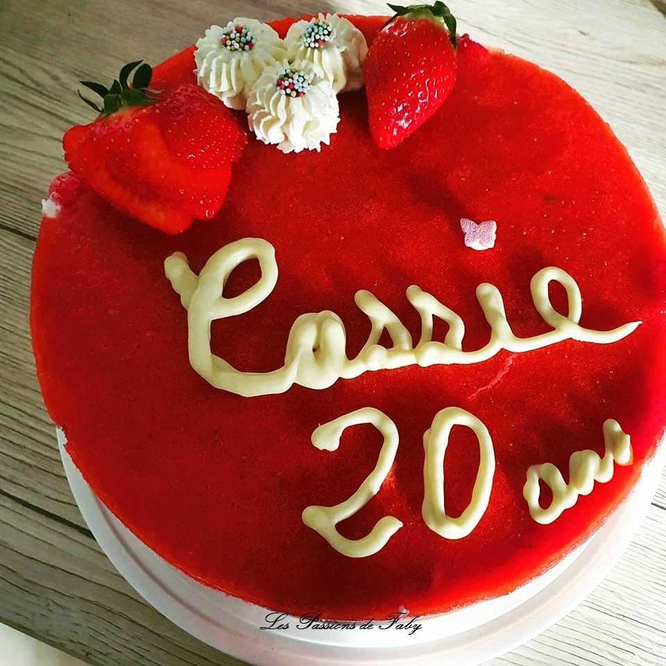 Non seulement c’est le printemps, mais en plus ce sont les 20 ans de ma grande. Les fraises sont ses fruits prĂ©fĂ©rĂ©s. En tant normal, tant que je n’en ai pas dans mon jardin, j’en achĂšte pas, mais cette annĂ©e, non seulement je n’ai plus aucun fraisier mais on est en plein confinement. On n’a pas tous les jours 20 ans, et du coup elle n’a pas son copain avec elle, ses potes ne seront pas lĂ pour les fĂȘter avec elle, on ne peut pas faire notre grand apĂ©ro / BBQ annuel qui lance les festivitĂ©s de printemps, ni inviter tous nos amis et notre famille de cĆur, elle ne pourra pas sortir, ni aller au resto⊠bref⊠je voulais toutefois marquer le coup, donc j’ai cĂ©dĂ© Ă sa requĂȘte et je lui ai prĂ©parĂ© un fraisier. Au dĂ©part elle voulait une tarte aux fraises , mais comme j’avais dĂ©jĂ fait un Saint-HonorĂ© il y a peu elle n’avait pas trop envie de crĂšme pĂątissiĂšre . Je lui ai dit que parfois il y avait de la crĂšme pĂątissiĂšre dans les fraisiers, donc aprĂšs nĂ©gociation, j’ai fait un fraisier sans crĂšme pĂątissiĂšre mais avec une recette qui n’est pas certainement celle du fraisier classique, mais c’est la mienne, Cassie a trouvĂ© ça bon et la famille aussi, donc je partage aujourd’hui ma recette avec vous.
