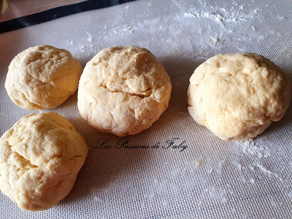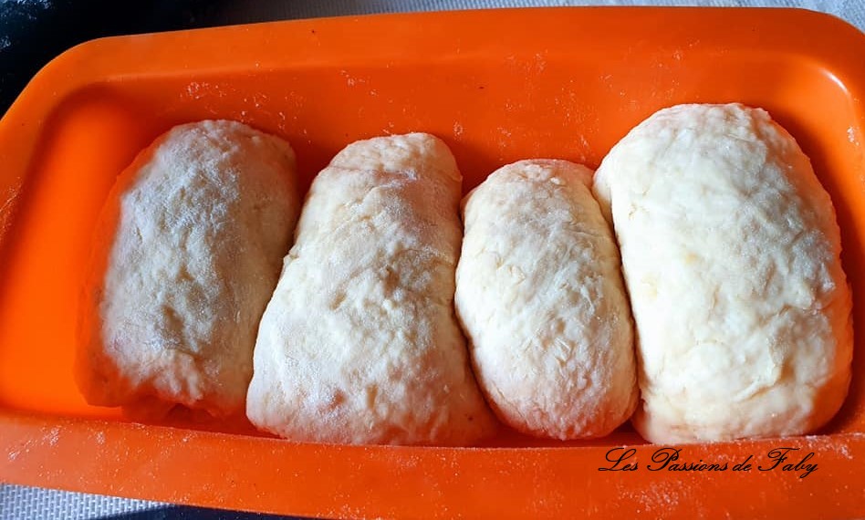 Sur un roul’pat’ enfariné, dégazer la pâte et former 4 pâtons