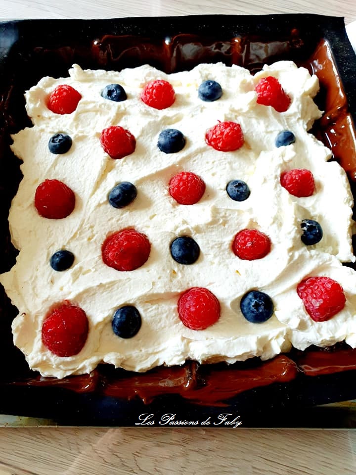 Ci-dessus ⤴⤴⤴ j’ai rajouté un décor de crème chantilly / mascarpone et quelque fruits.