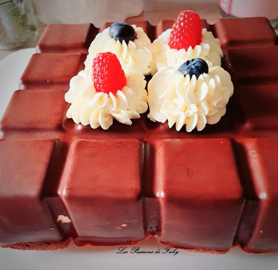 Mettre la moitié de votre gâteau (celle qui était au fond du moule, ici la partie avec le empreintes tablettes)