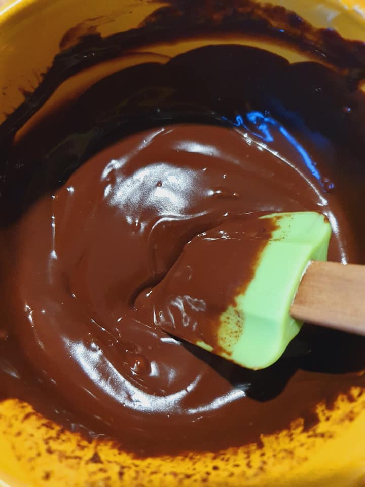 - Faire fondre le chocolat cassĂ© en morceaux (perso j’utilise des pistoles de chocolat) avec le lait et le beurre durant 1 min 30 au micro-ondes.