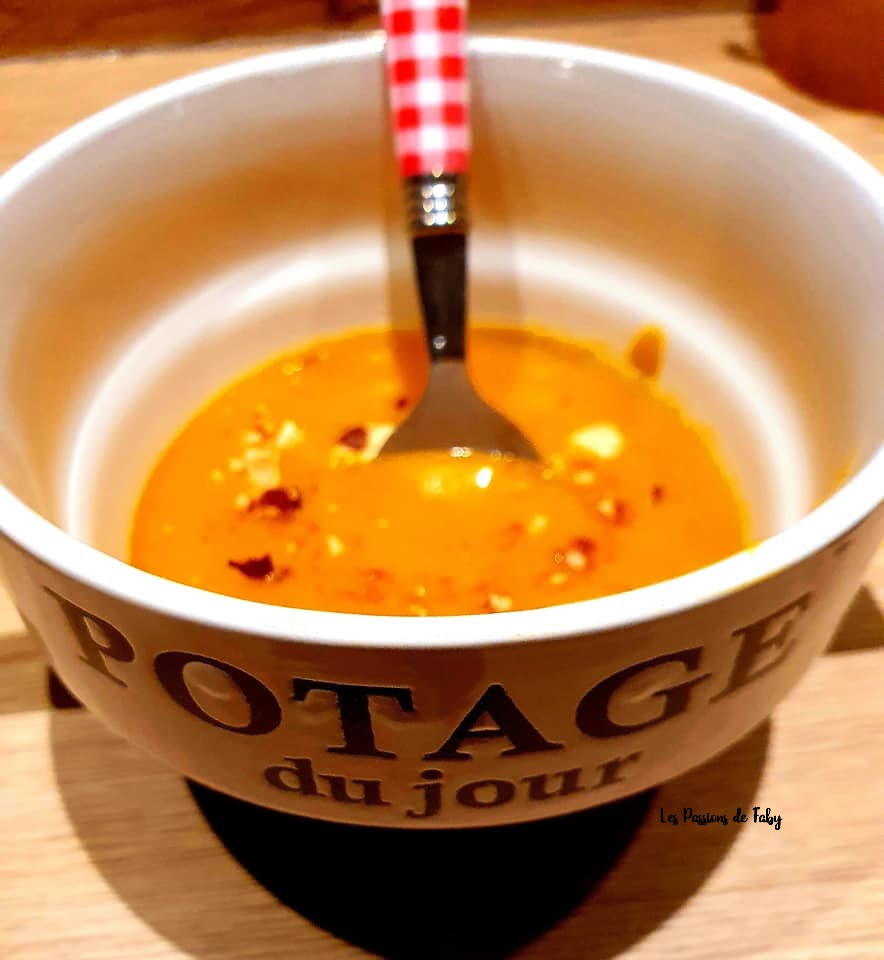 Pour donner un coup de pep’s à mon velouté j’ai rajouté un peu de piment d’Espelette dessus et rajouté quelques noix concassées pour donner un petit côté croquant.