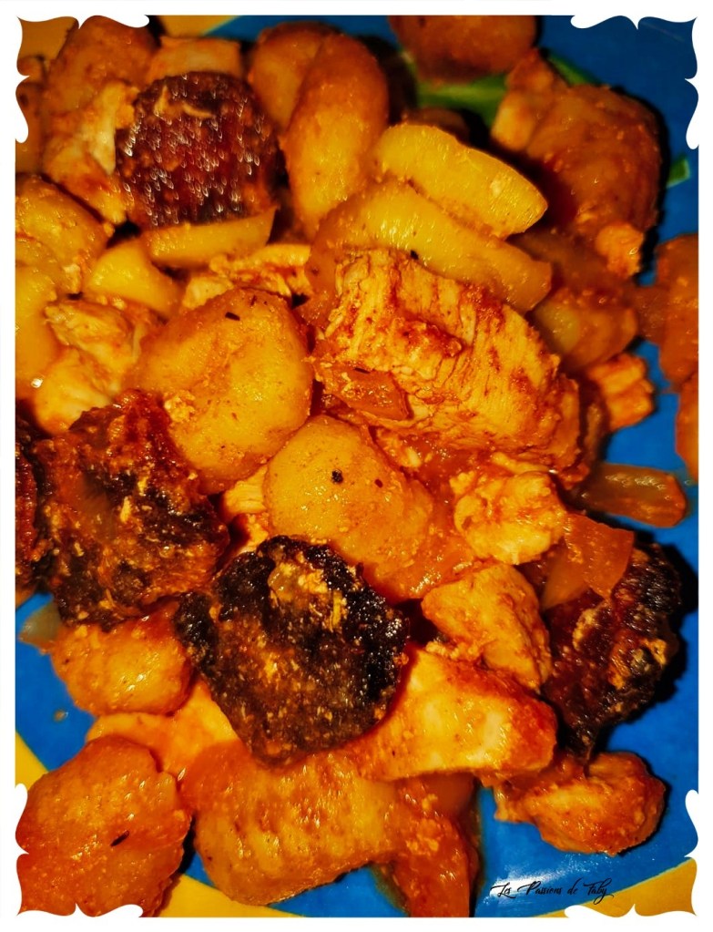Ce soir , Kc et moi sommes parties en free style avec ce qu’on avait sous la main, en fond de placard et fond de frigo. Résultat : une poêlée de gnocchis, émincés de poulet, chorizo, courgettes (du jardin de cet été et congelées) , oignons (du jardin) le tout sauté et aromatisé au thym (Toujours du jardin), au romarin avec une once de paprika et un peu de concentré de tomates (parce que ce n’est pas la saison des tomates) Mon seul regret : ne plus avoir de poivrons pour rehausser le tout .