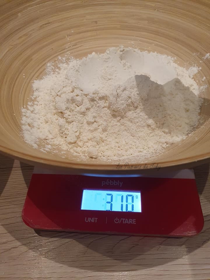 Prélève 310g de base sèche dans ton saladier ( le reste te servira ultérieurement pour autre chose).