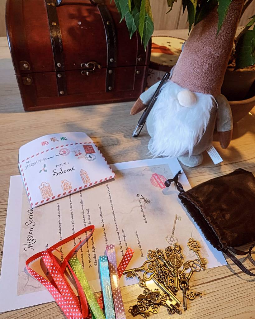 Les clefs 🔑 ont été cachées dans toute la maison (mais pas trop facile non plus histoire que la partie dure un bon moment) dans le paquet de céréales, sous les slips dans le tiroir à sous-vêtements, dans le sapin … une fois toutes les clefs retrouvées ,on les réunit dans une boîte sous le sapin et le lendemain à la place les enfants découvrent quelques chocolats, ou une clémentine ou du pain d’épices…