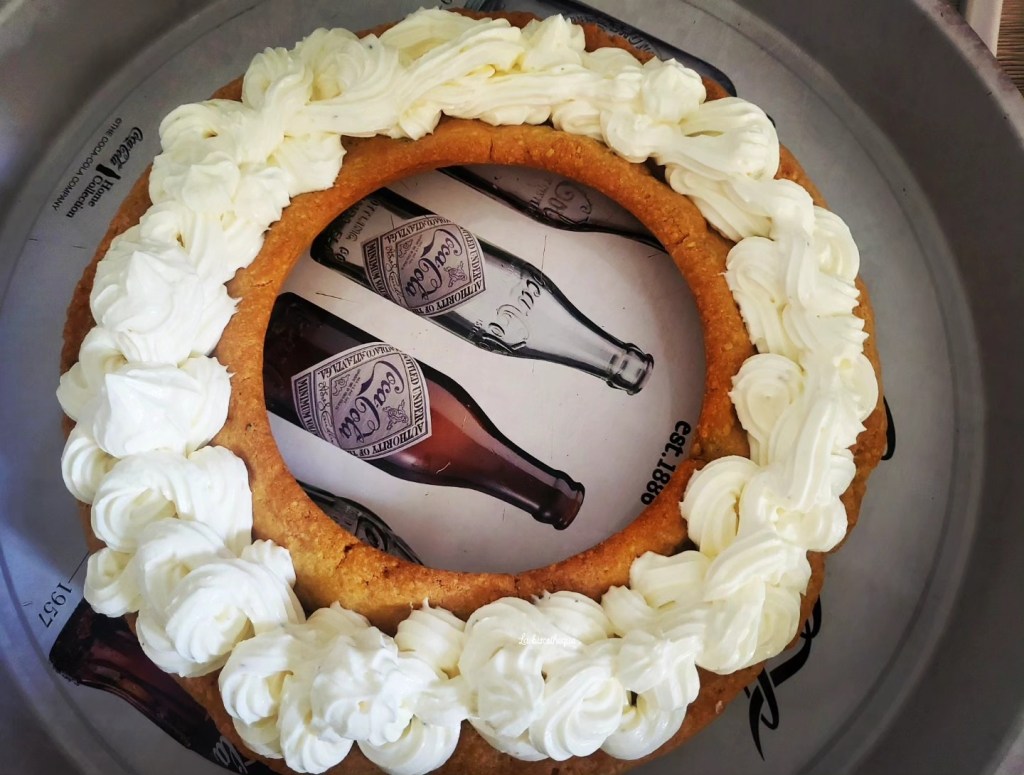 J’ai mis ce mélange dans une poche à douille munie d’une douille cannelée et j’en ai étalé sur toute la pâte comme ceci 👇👇👇