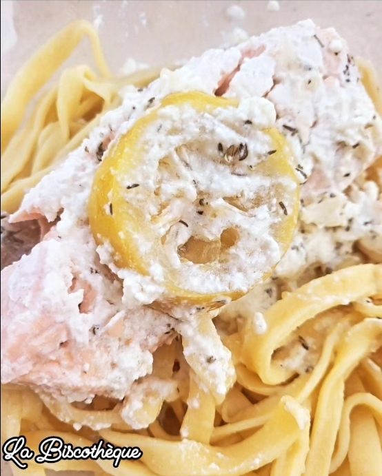 Du coup, j’ai accompagné le saumon avec des tagliatelles fraîches maison, pour la recette c’est ici—> https://les-passions-de-faby.com/2008/03/11/tagliatelles-maison/