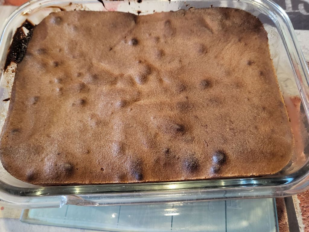 Au micro-ondes faire fondre le beurre et le chocolat. Mélanger cette préparation à la précendente et mélanger.