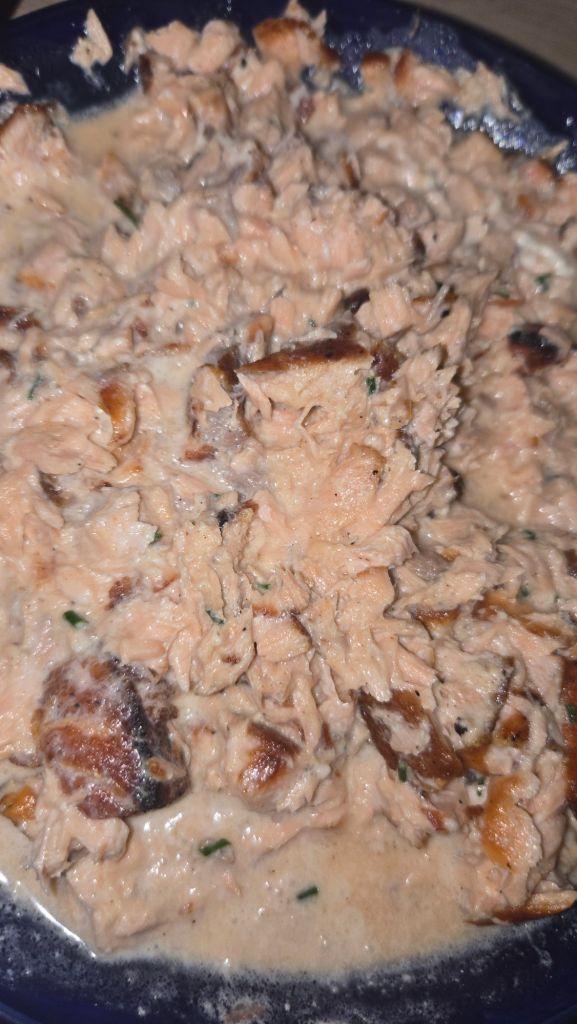 Une couche de mélange au saumon.