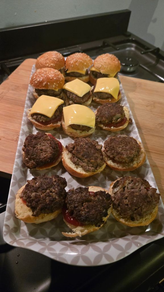- Des mini pains burger tout prêts (achetés chez Leclerc, je n’ai pas eu le temps de les faire moi-même)